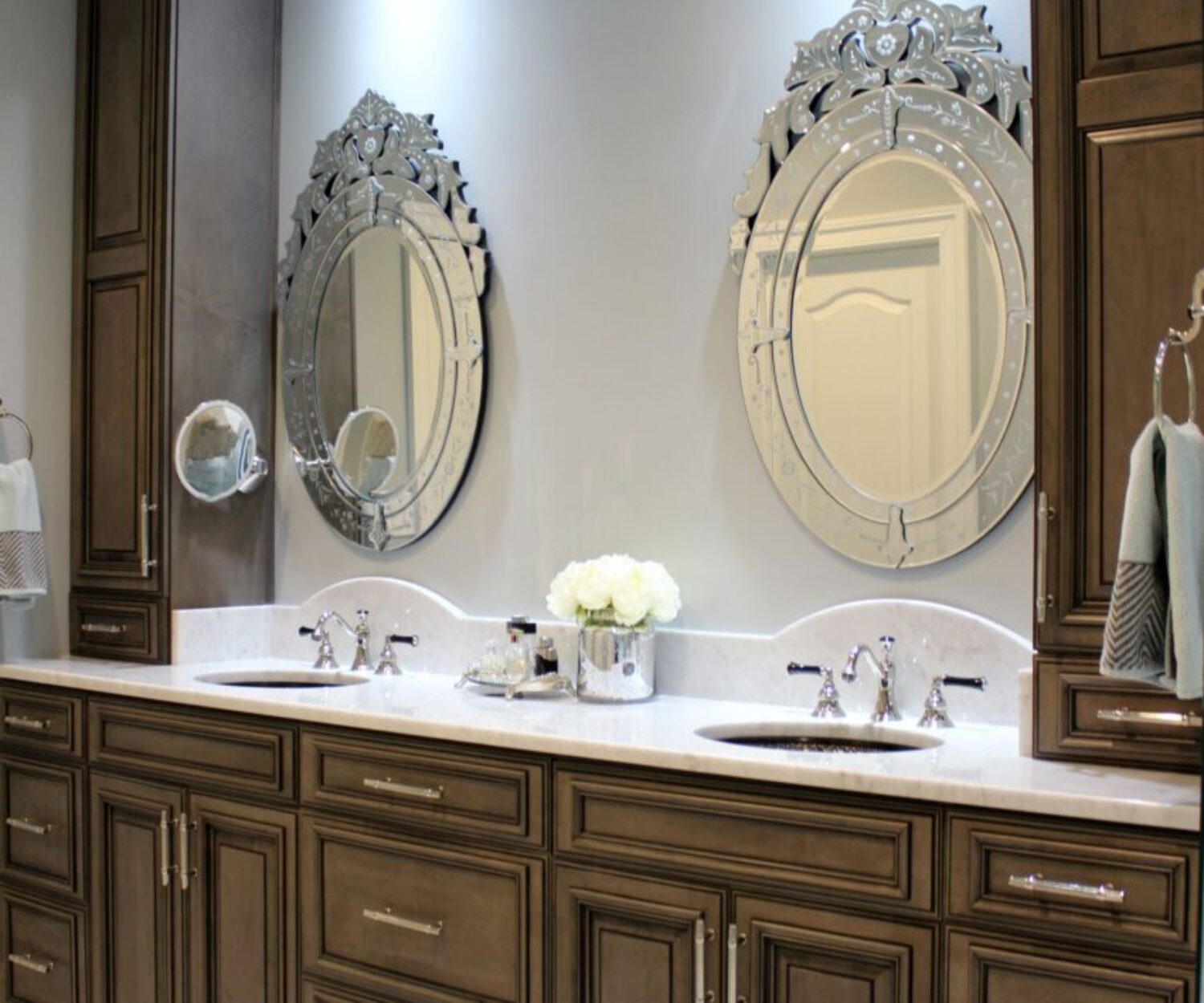 We hired him to design a large addition to our house which included a large luxury kitchen, powder room, laundry room, and a master suite (including a walk-in closet). His services also included light design, color scheme, artwork and window treatments. Because Grandior is a full service design firm, we were able to achieve the desired results at one destination. We would, and have, highly recommended him to others and are continuing to use his services to complete two other bathrooms.