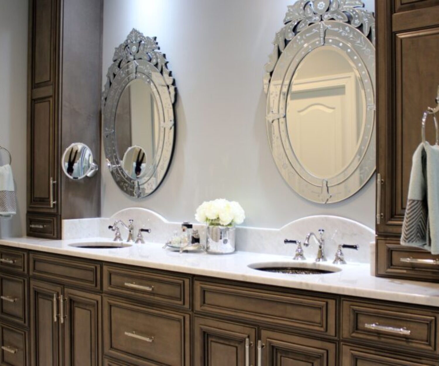 We hired him to design a large addition to our house which included a large luxury kitchen, powder room, laundry room, and a master suite (including a walk-in closet). His services also included light design, color scheme, artwork and window treatments. Because Grandior is a full service design firm, we were able to achieve the desired results at one destination. We would, and have, highly recommended him to others and are continuing to use his services to complete two other bathrooms.